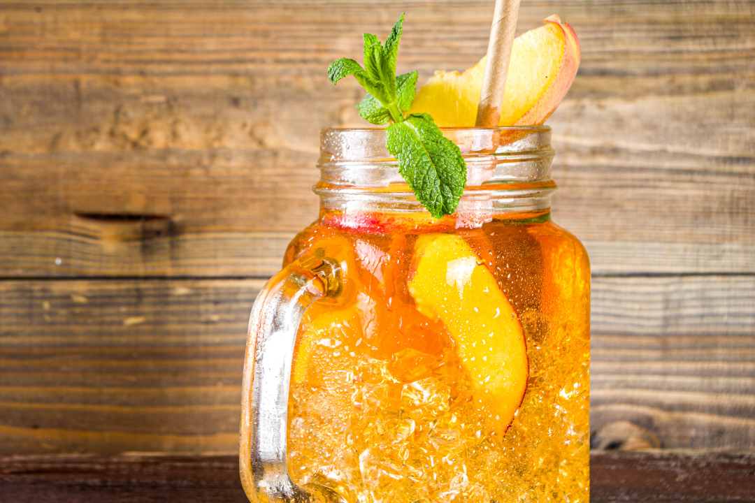 Then, put in ice and top it up with a bit of cloudy apple juice.